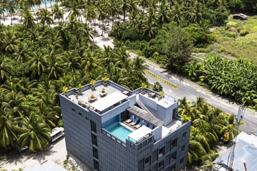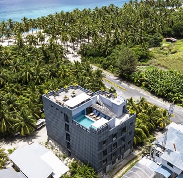 Maathundi Hotel is a small boutique hotel in Fuvahmulah, offering a calm and comfortable base for the expedition. The hotel provides clean, well-appointed rooms and full-board meals, creating an easy rhythm between diving and rest.