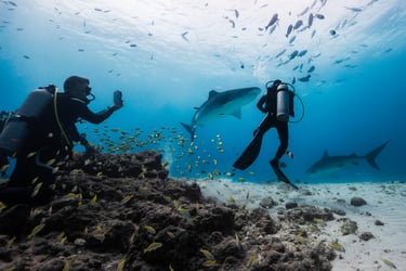 Tiger Point is known for regular tiger shark encounters, drawing divers who are comfortable in blue water and interested in observing large animals in their natural setting. This is a place where patience and awareness are rewarded.