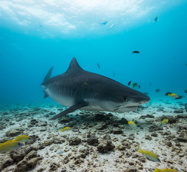 A small-group expedition focused on consistent tiger shark diving, paired with daily recovery-focused yoga to help you stay relaxed, mobile, and present throughout the week.